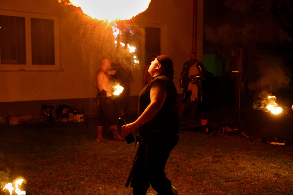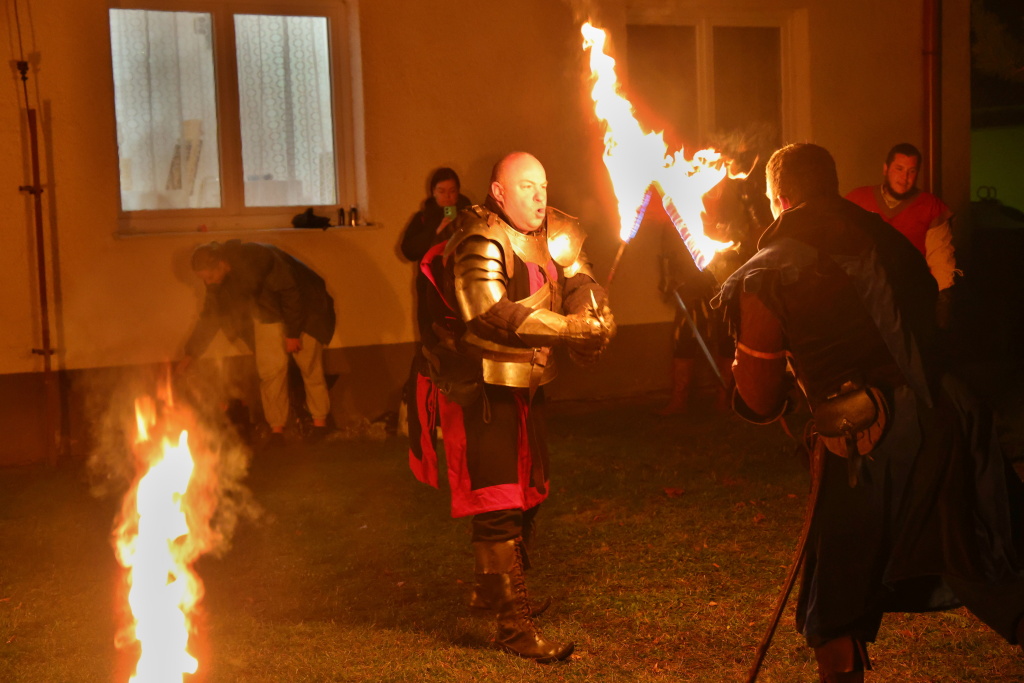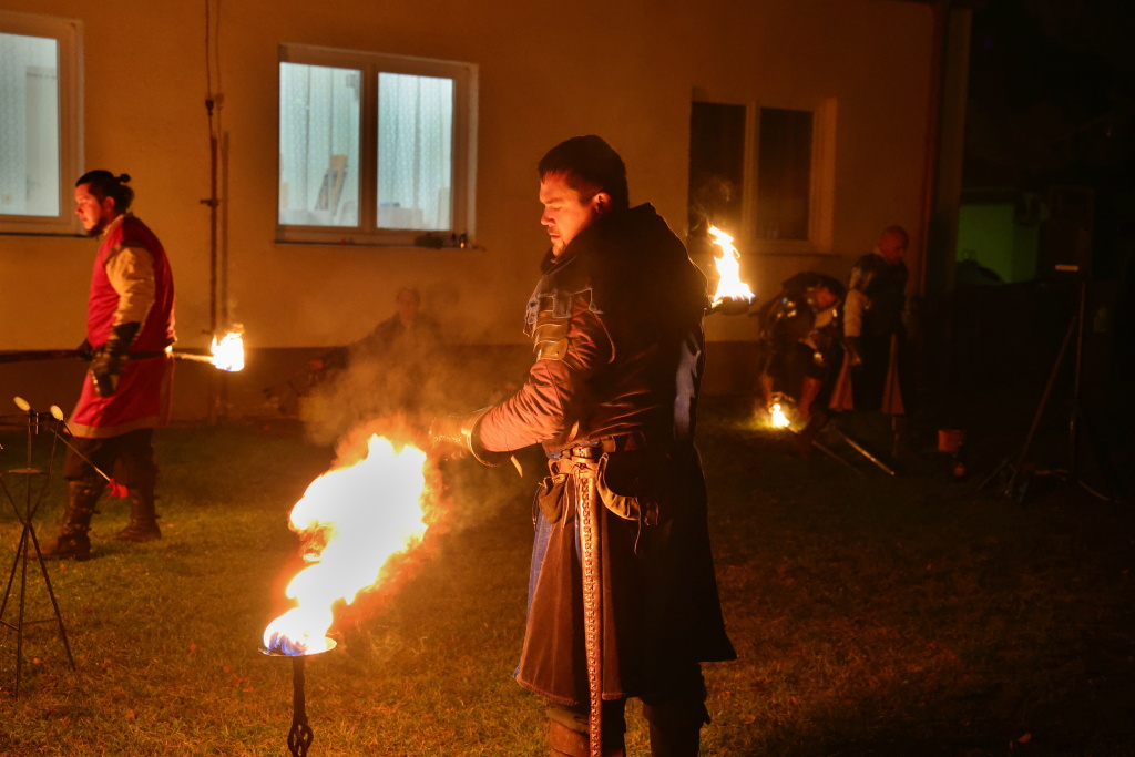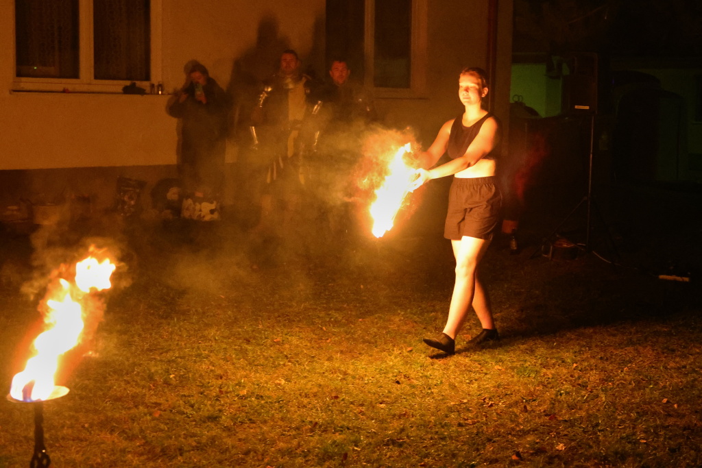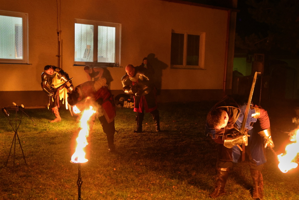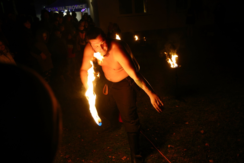 Program byl zahájen vystoupením skupiny Albion, která svým energickým ohnivým koncertem zahřála publikum i v chladnějším podzimním počasí. Děti se sotva stačily vydýchat z prvních zážitků, když se od hasičské zbrojnice ozval rachot – do areálu totiž dorazili čerti na pekelném traktoru. Jejich příjezd vyvolal směs smíchu i lehkých obav, ale nakonec získali obrovskou pozornost malých návštěvníků.