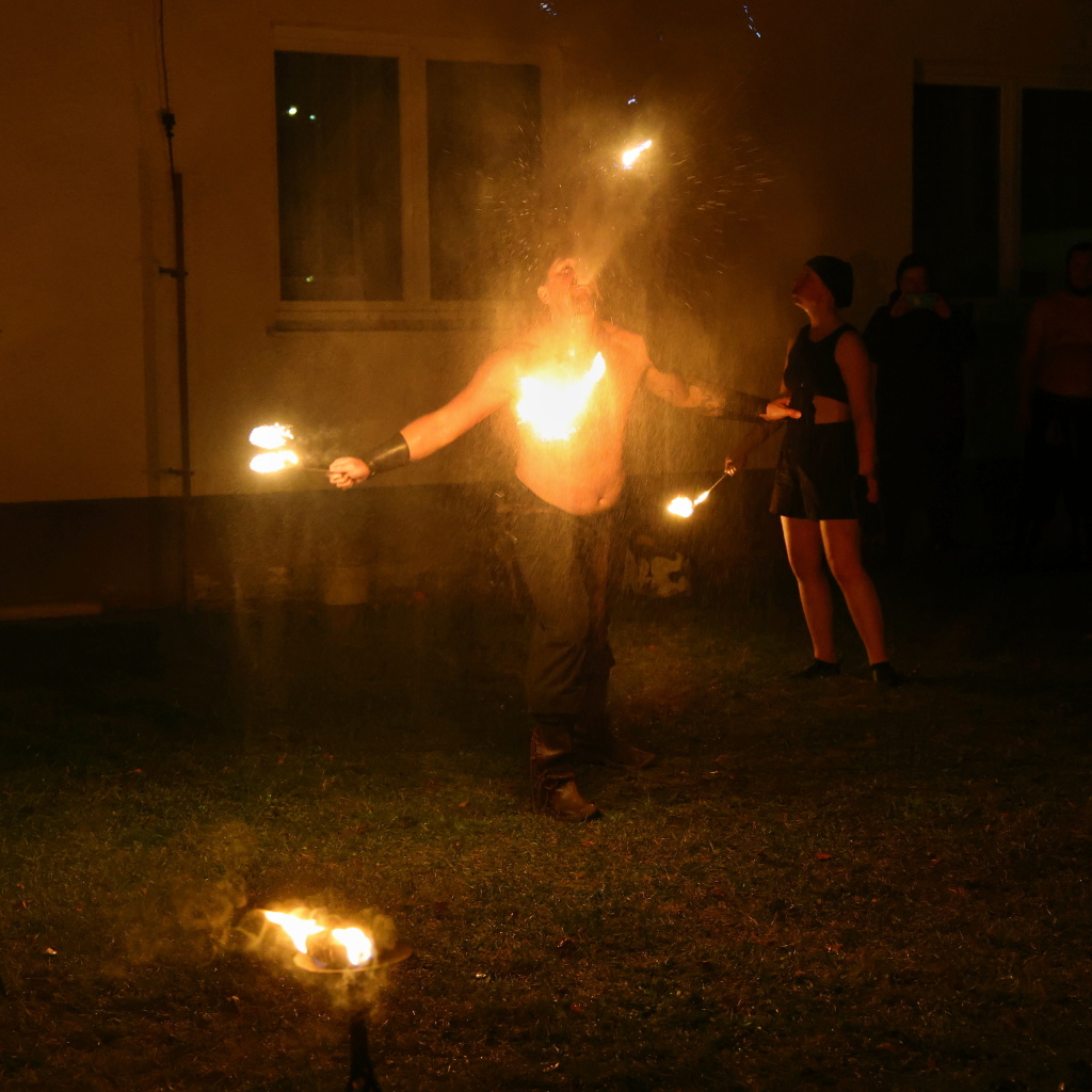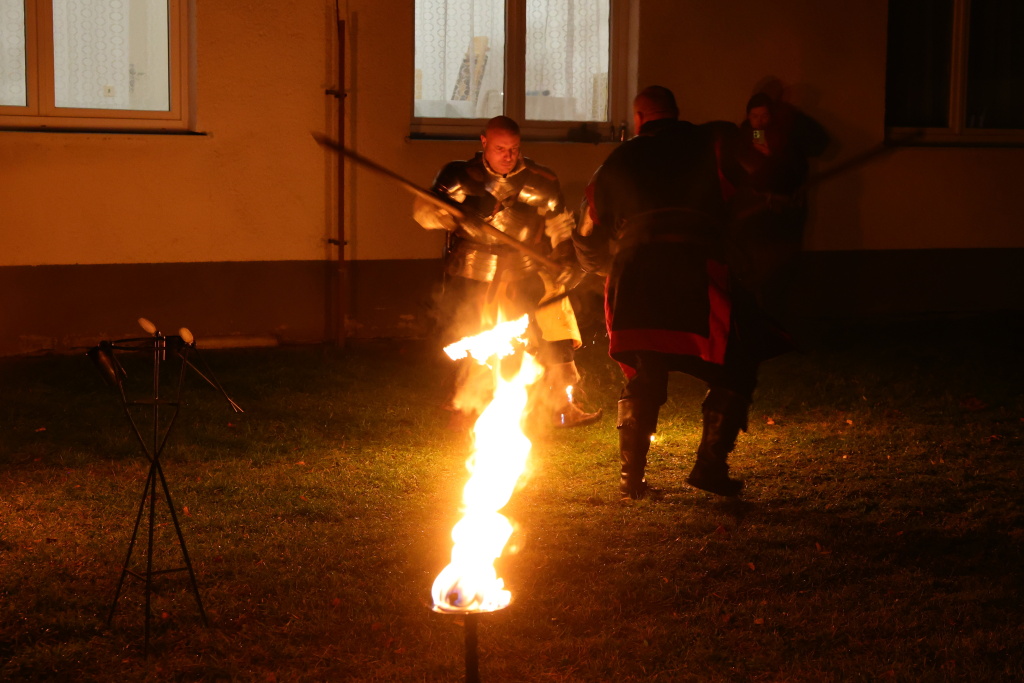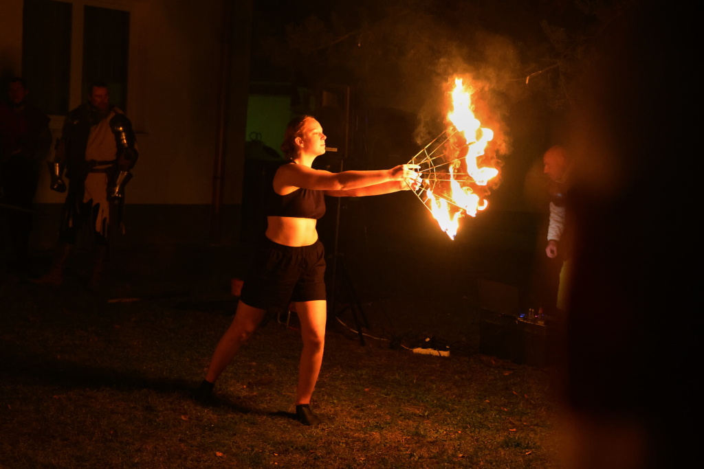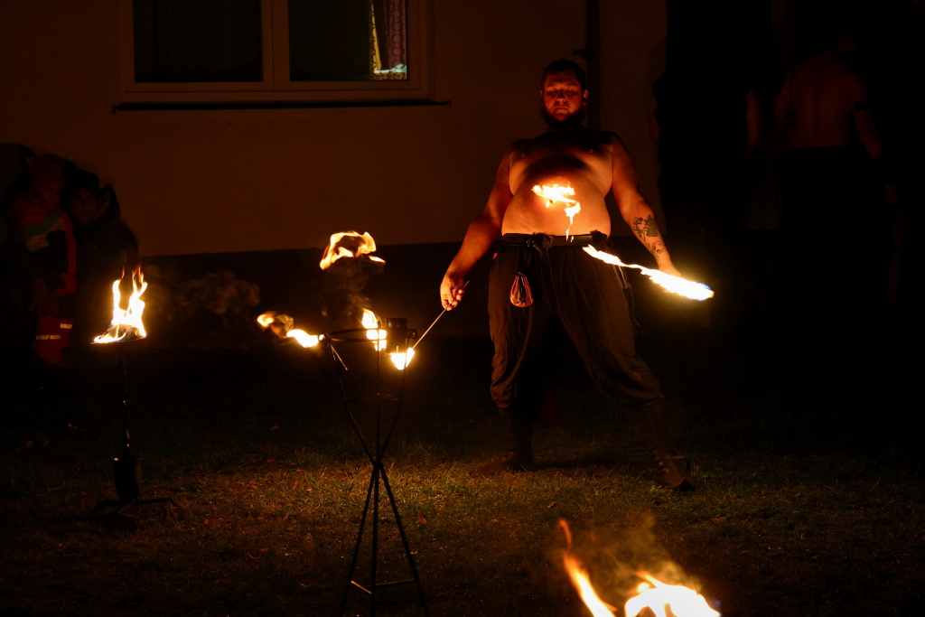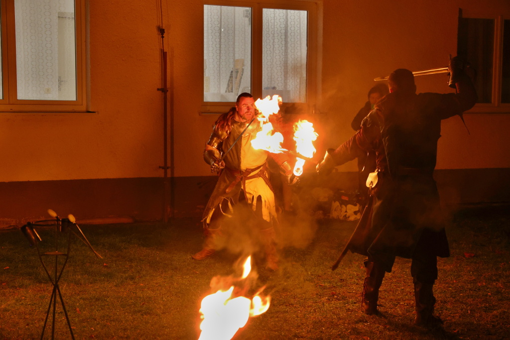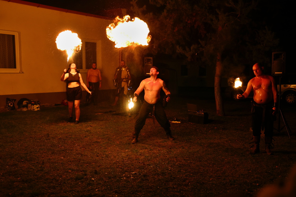 Program byl zahájen vystoupením skupiny Albion, která svým energickým ohnivým koncertem zahřála publikum i v chladnějším podzimním počasí. Děti se sotva stačily vydýchat z prvních zážitků, když se od hasičské zbrojnice ozval rachot – do areálu totiž dorazili čerti na pekelném traktoru. Jejich příjezd vyvolal směs smíchu i lehkých obav, ale nakonec získali obrovskou pozornost malých návštěvníků.
