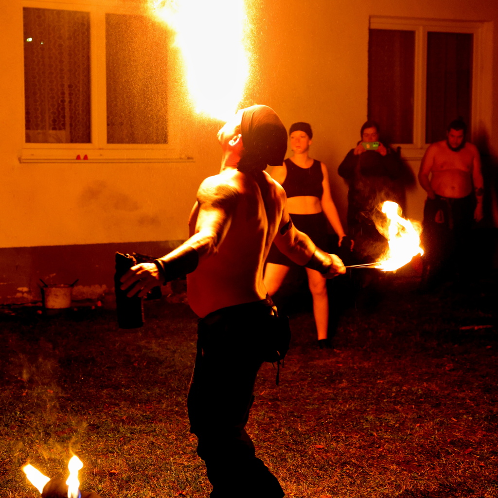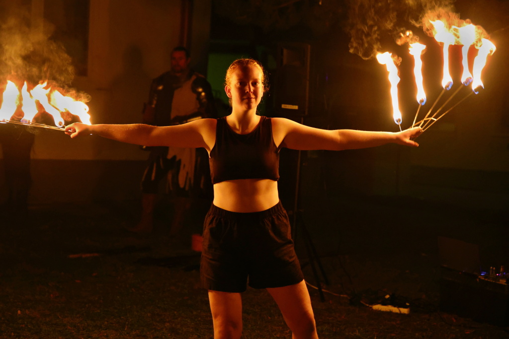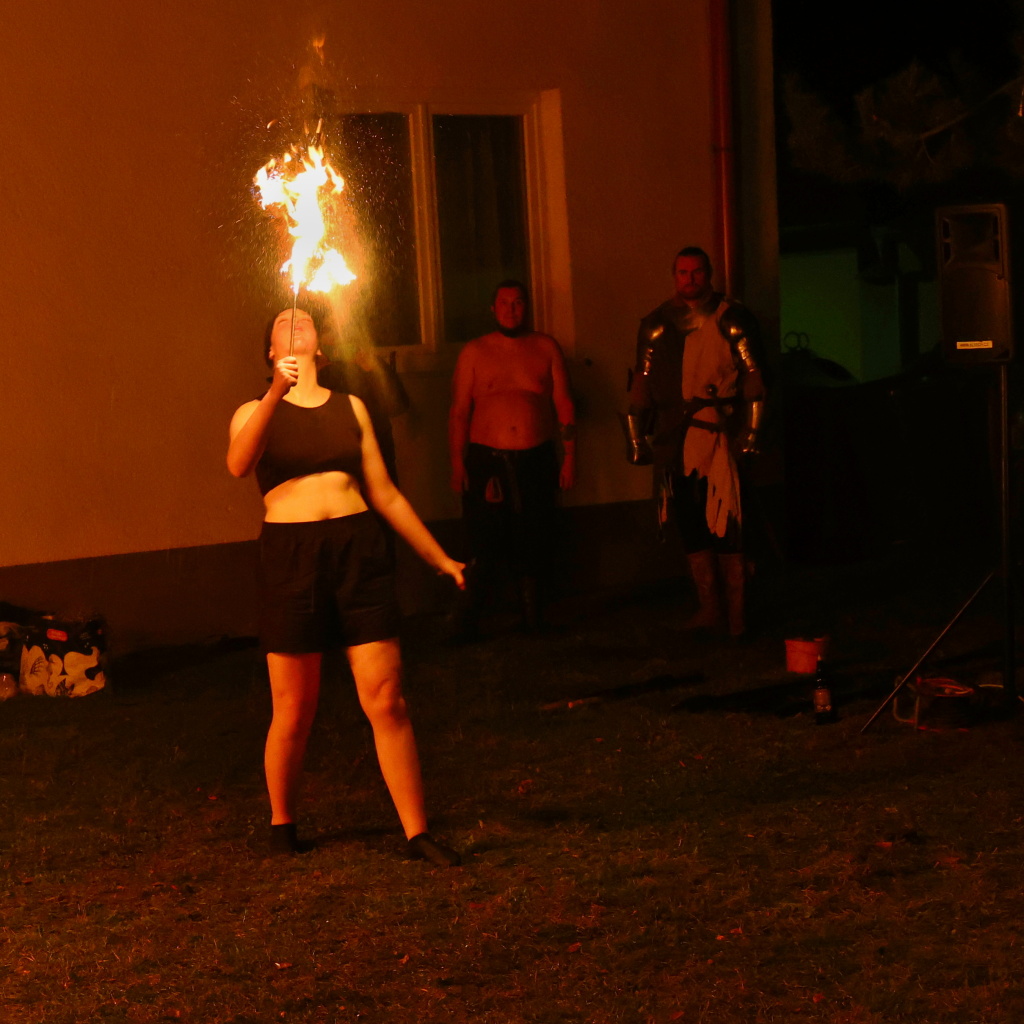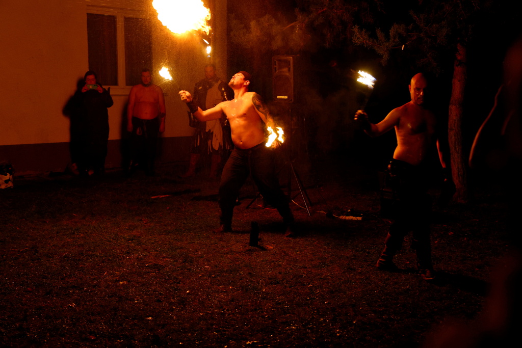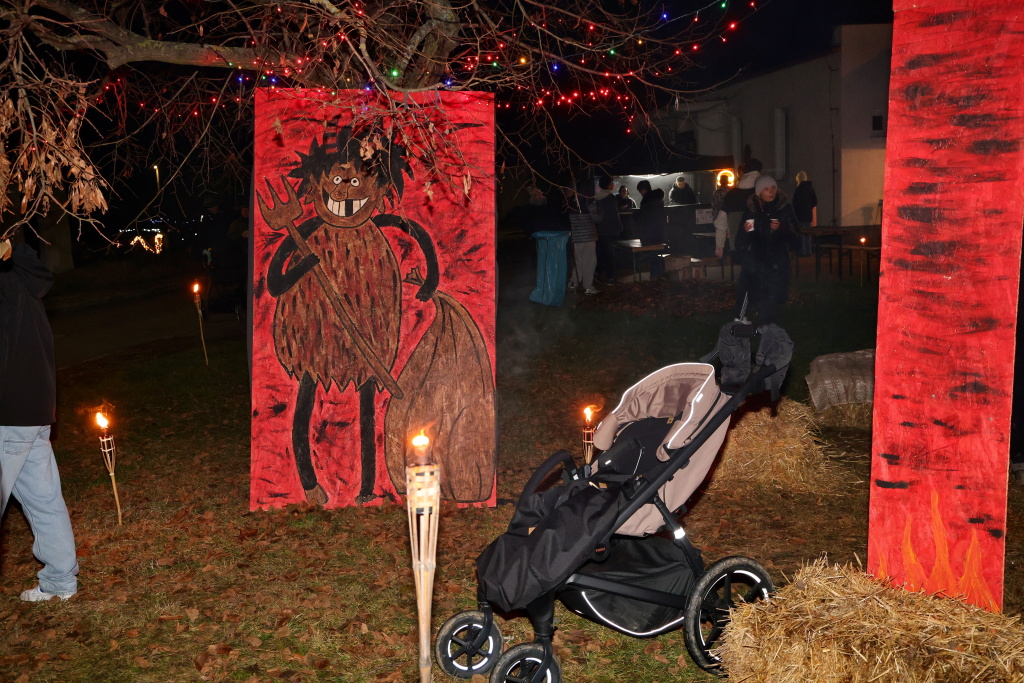 Program byl zahájen vystoupením skupiny Albion, která svým energickým ohnivým koncertem zahřála publikum i v chladnějším podzimním počasí. Děti se sotva stačily vydýchat z prvních zážitků, když se od hasičské zbrojnice ozval rachot – do areálu totiž dorazili čerti na pekelném traktoru. Jejich příjezd vyvolal směs smíchu i lehkých obav, ale nakonec získali obrovskou pozornost malých návštěvníků.