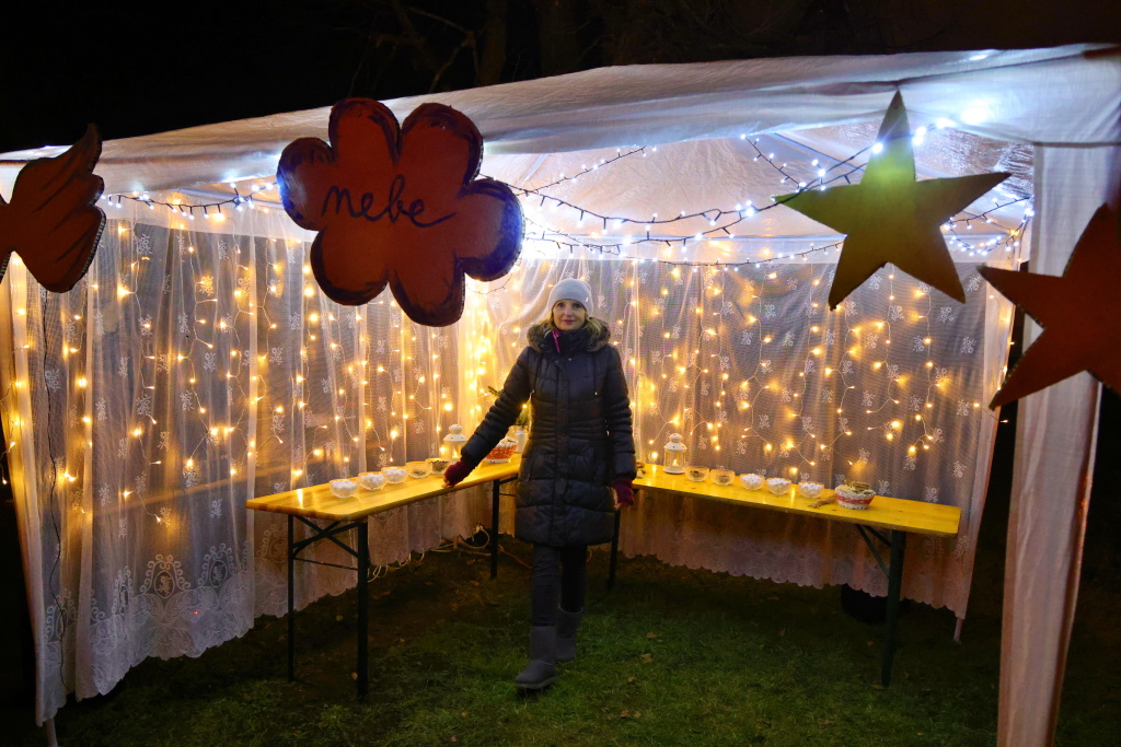 Po rozsvícení stromečku si návštěvníci mohli vychutnat i něco teplého na zahřátí, což při chladném listopadovém počasí přišlo vhod. Lidé postávali, posedávali, povídali si.