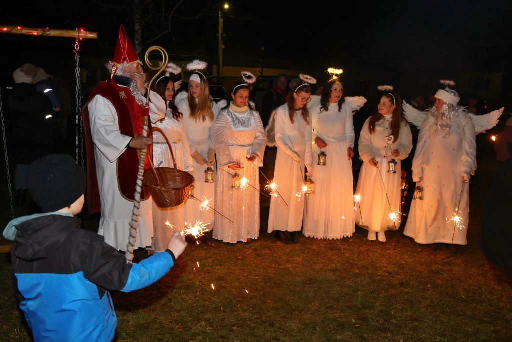 Vyvrcholením večera byl pak slavnostní příchod Mikuláše v doprovodu andělů. Ti rozsvítili atmosféru dobrotou a klidem a v kontrastu s pekelnou družinou vytvořili magickou podívanou, kterou si užívali nejen nejmenší.
