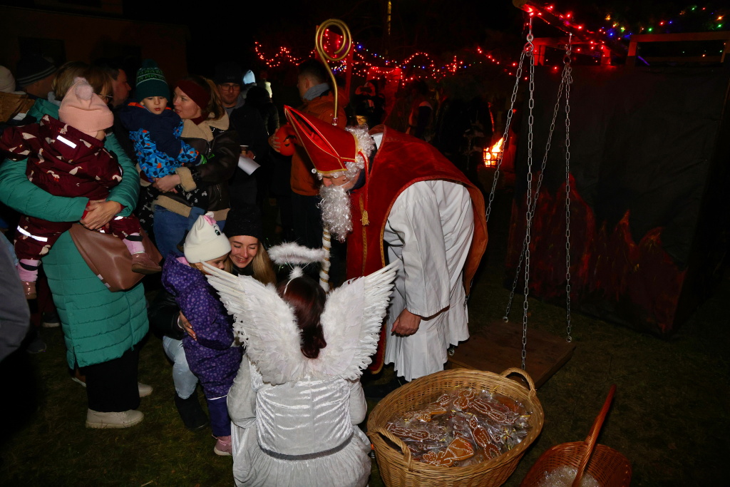 Vyvrcholením večera byl pak slavnostní příchod Mikuláše v doprovodu andělů. Ti rozsvítili atmosféru dobrotou a klidem a v kontrastu s pekelnou družinou vytvořili magickou podívanou, kterou si užívali nejen nejmenší.